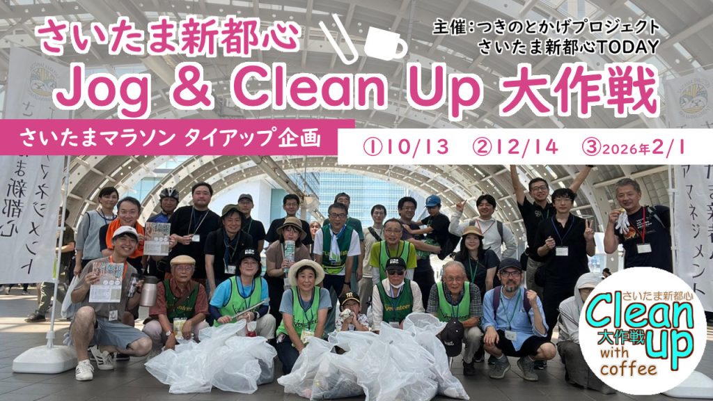 つきのとかげプロジェクトとして、定期的にさいたま新都心周辺で開催しているゴミ拾い+交流イベント『Clean up大作戦 with Coffee』。 その拡大企画として、今回は「プロギング」イベントを開催しま … 続きを読む 【さいたまマラソン・タイアップ企画】『さいたま新都心 Jog & Clean Up 大作戦(プロギング)』を開催します!